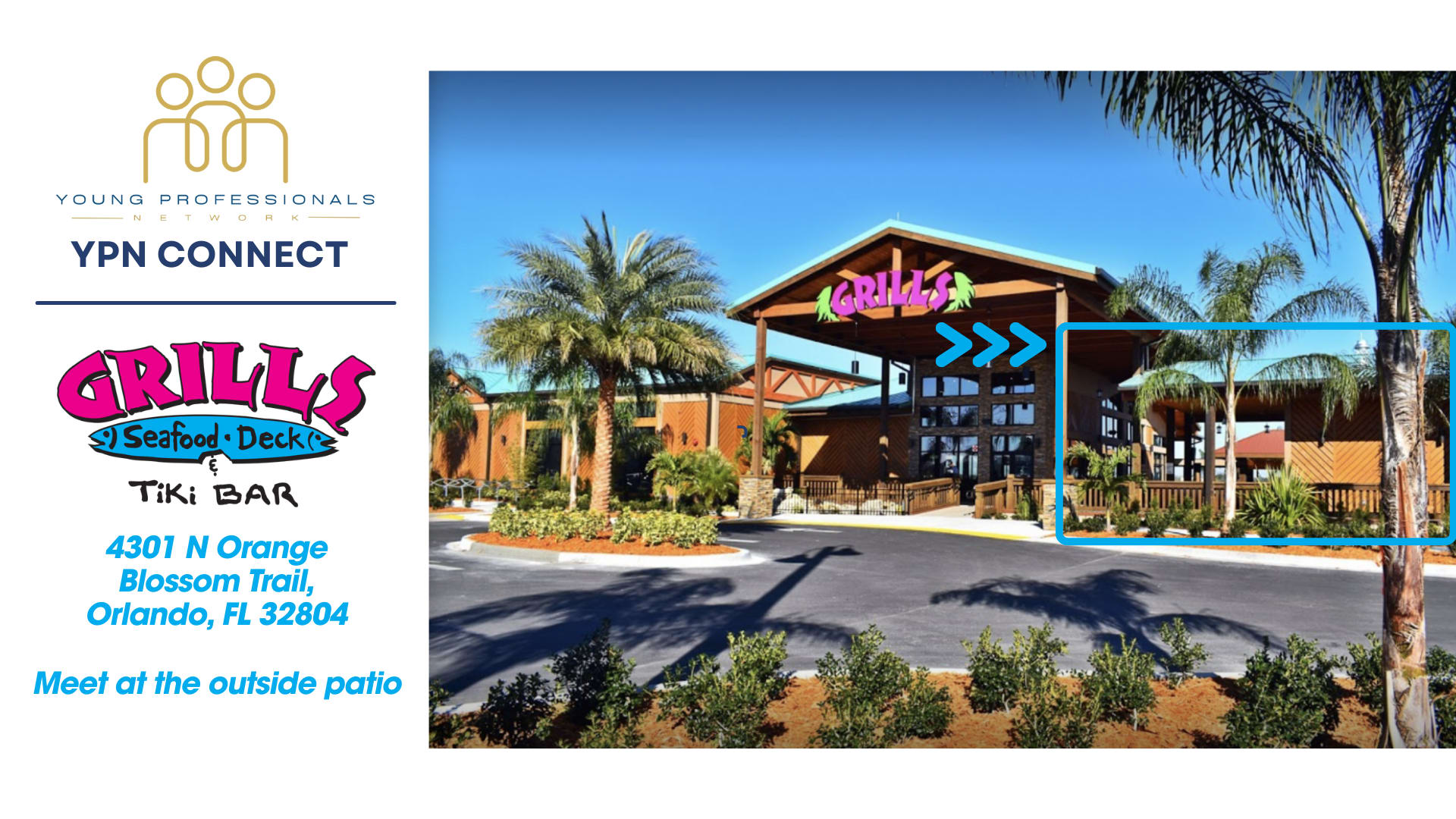 We will be gathering in our location at Grills Lakeside Orlando.